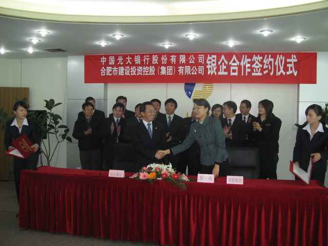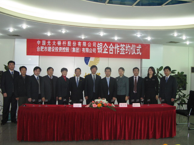 继今年4月份合肥市建设投资控股(集团)有限公司(以下简称合肥建投)与中国工商银行签订200亿元融资协议后,再传喜讯,12月1日上午,合肥建投与中国光大银行签订商业合作协议,中国光大银行将在2008年至2011年期间,向合肥建投提供30亿元的融资支持,主要用于合肥市城市基础设施等重点项目的建设。