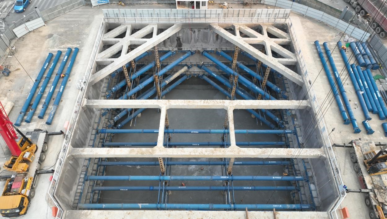 为顺利推进施工,克服工程难点,施工前期,建投集团所属城投公司项目办组织监理、施工等单位采取模拟推演风险源、优化土方开挖方案、组织协调工序衔接、优化施工空间布置等措施,于3月14日正式开始土方开挖。在遵循 “先撑后挖、水平分段、竖向分层”原则及“分层、分步、对称、平衡、限时”要点的基础上,保障基坑施工安全的同时,于4月19日顺利完成垫层浇筑,为后续主体结构施工创造良好的条件。